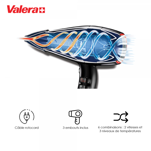 • Puissant : Le Valera SE2000 Swiss Selection possède un moteur AC-Professionnel Longue-Vie robuste (environ 10 ans d’utilisation) atteignant une puissance de 2000 watts respectant les cheveux.